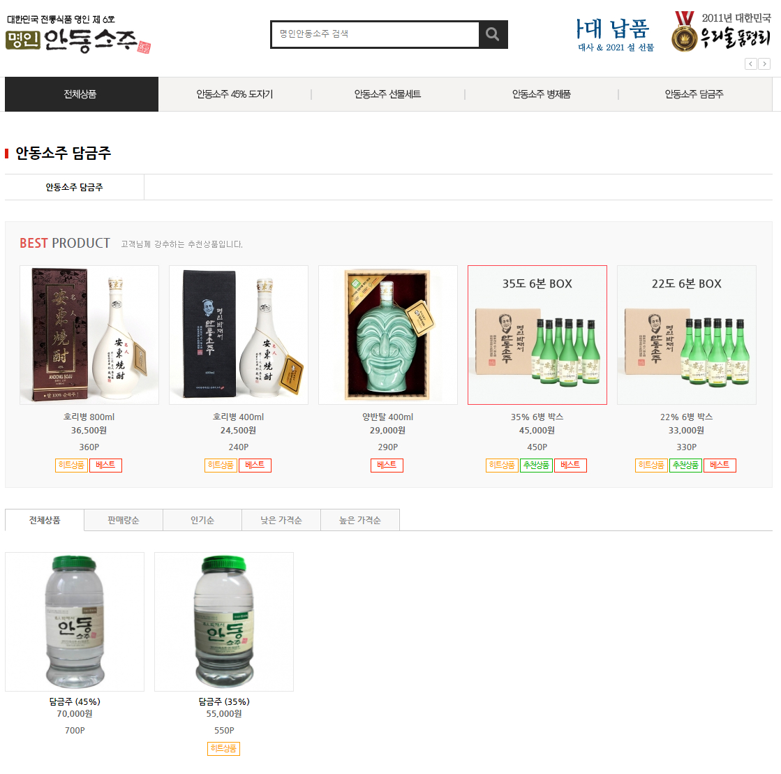 안동소주는 병값이 비싸서 그렇지 대용량으로 사면 저렴하다고 하더군요.