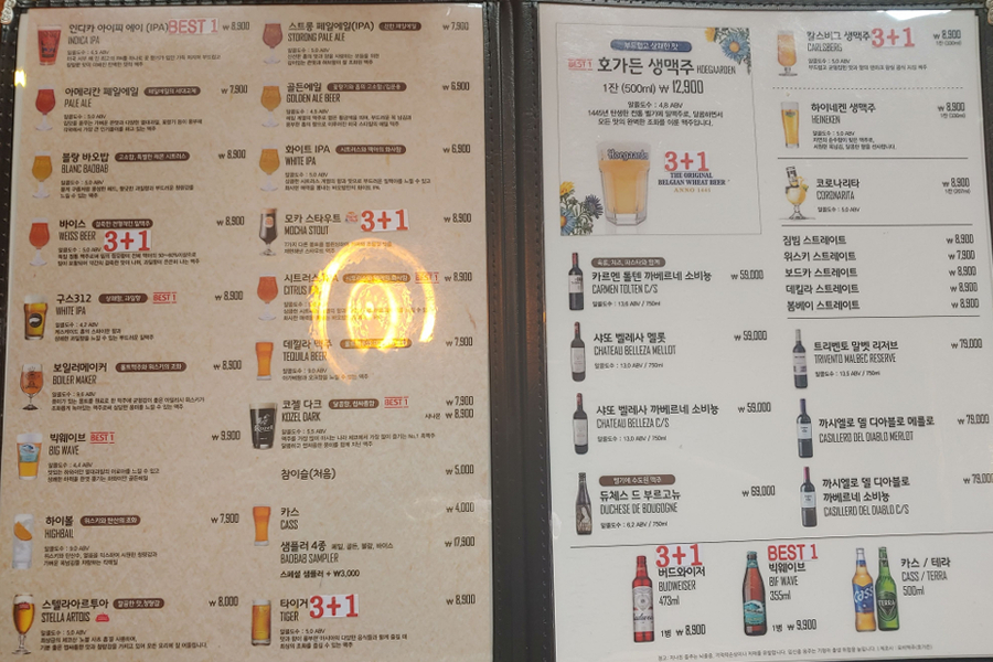 추가로 시킨 맥주는 잔 모양이 같아 따로 사진을 찍진 않았습니다.