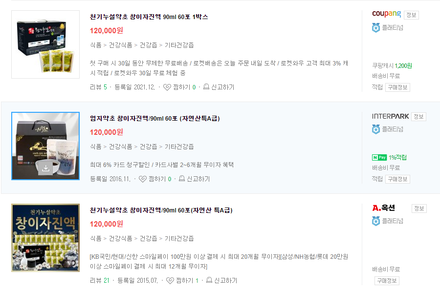 이런 효능을 보면 전부다 만병통치약입니다.