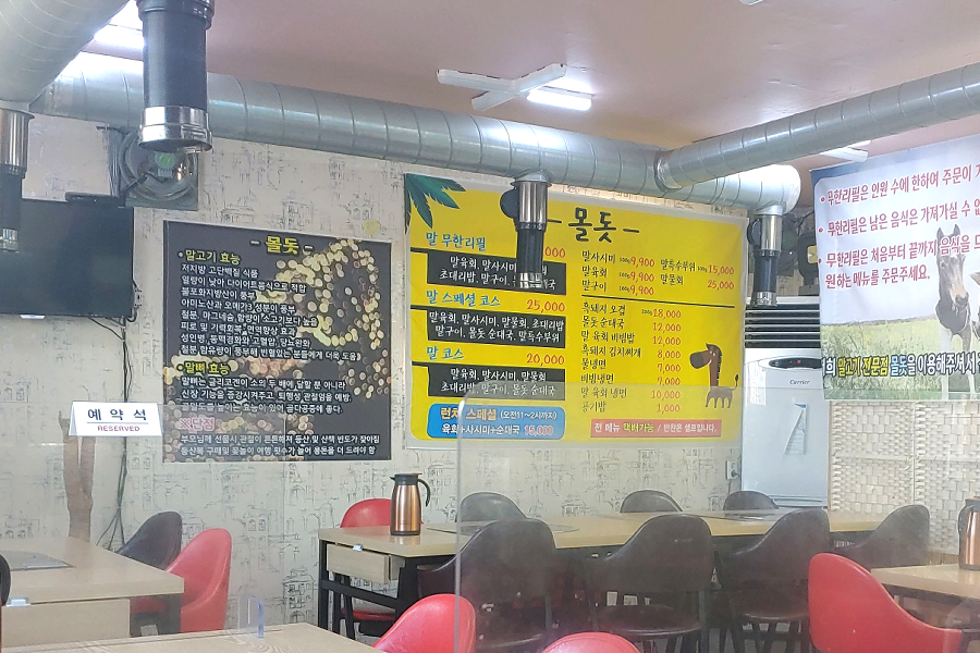 육회, 사시미, 물회, 초대리 밥, 말 구이, 순댓국 코스가 깔끔해서 마음에 들었습니다.