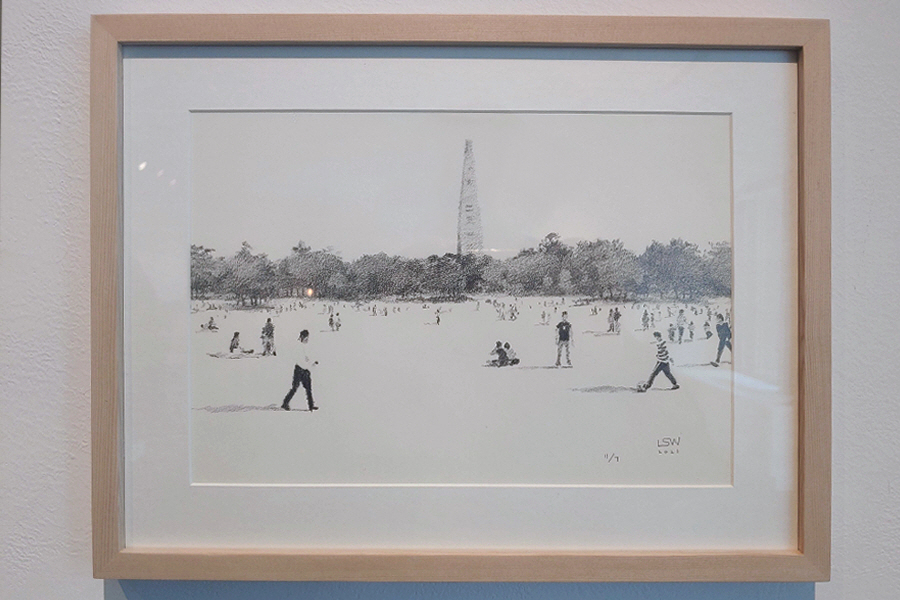 작품에 유리가 씌워져서 뒤가 많이 비칩니다.