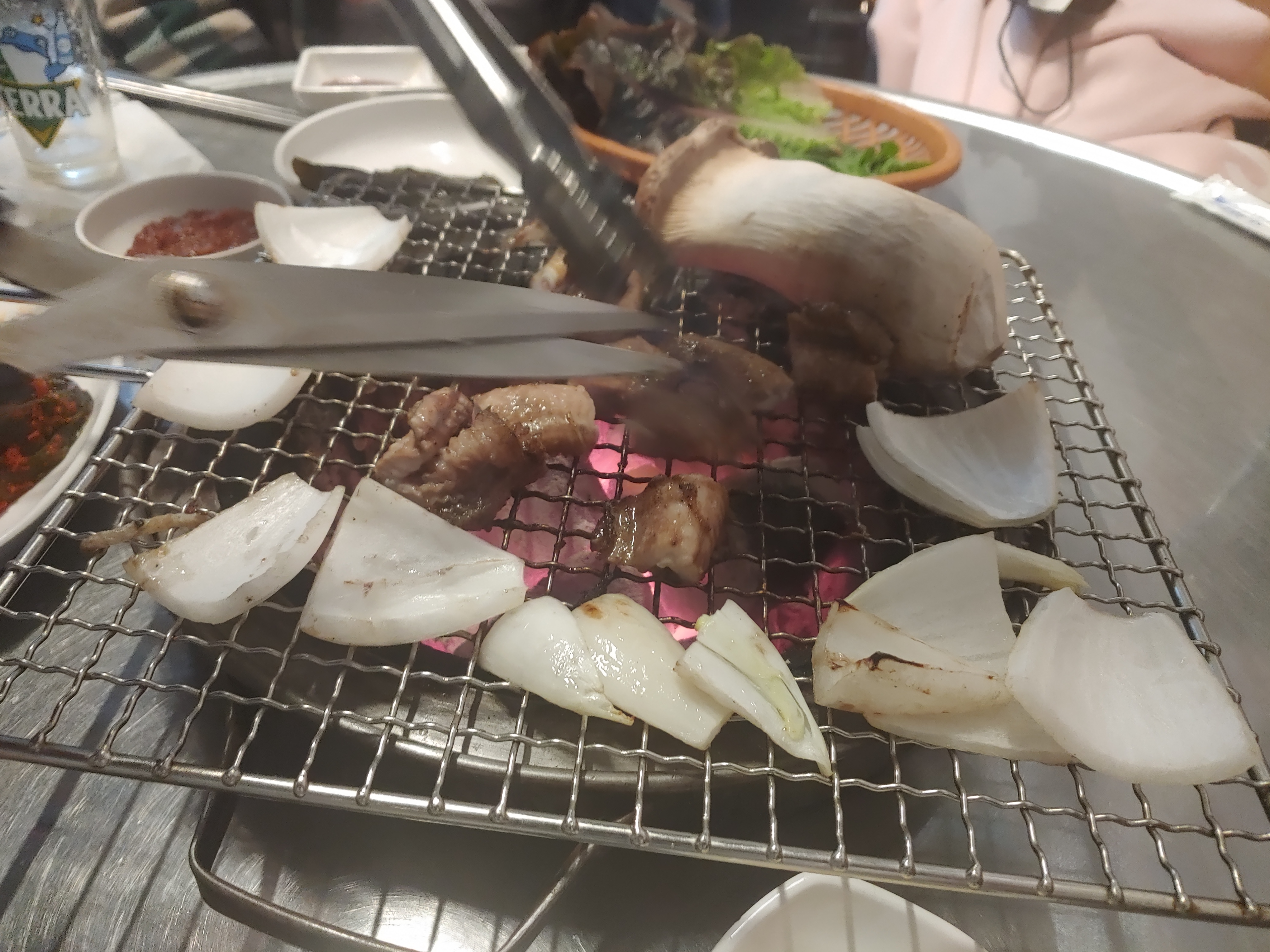 초벌 곰장어와 새송이버섯 양파입니다.
