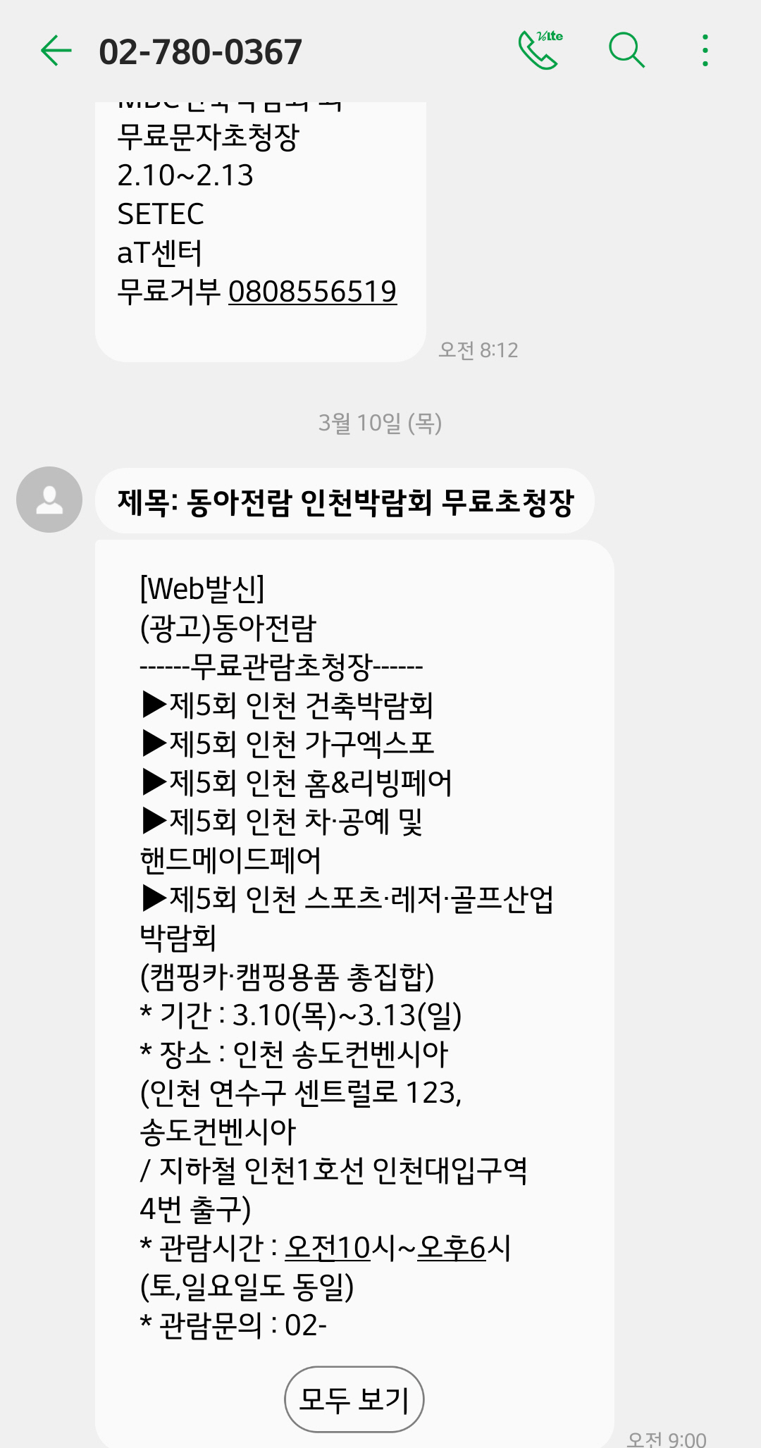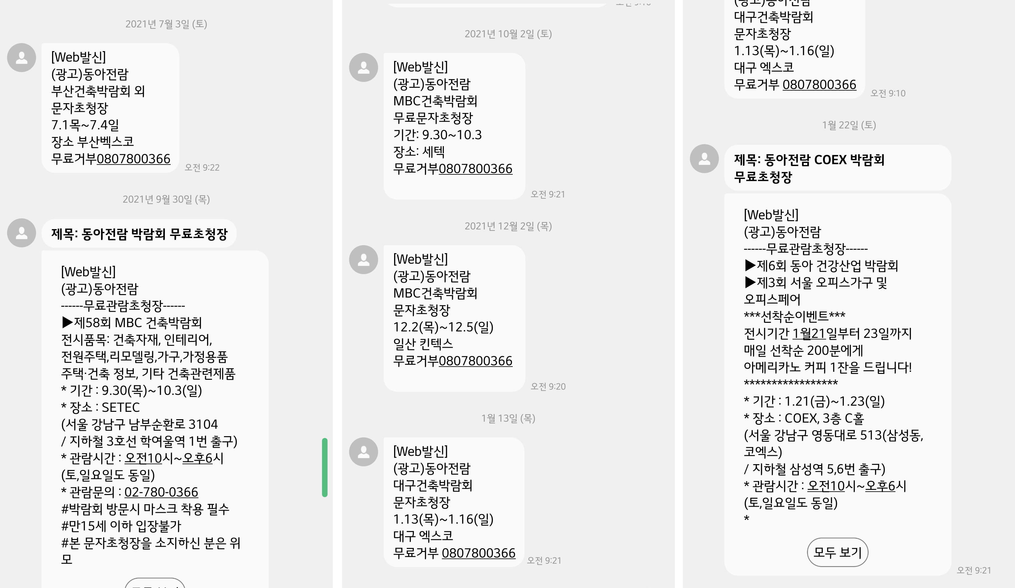 한번 관람 신청하면 계속 문자가 옵니다.