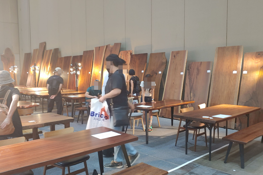지난번 전시회에도 나왔던 나무 탁자들 가까이서 보니 어마 무시한 가격입니다.