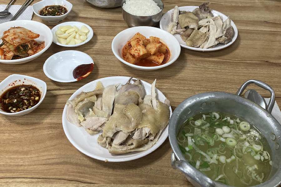 남대문시장에서 만난 지인은 닭곰탕을 먹자고 강하게 주장했습니다.